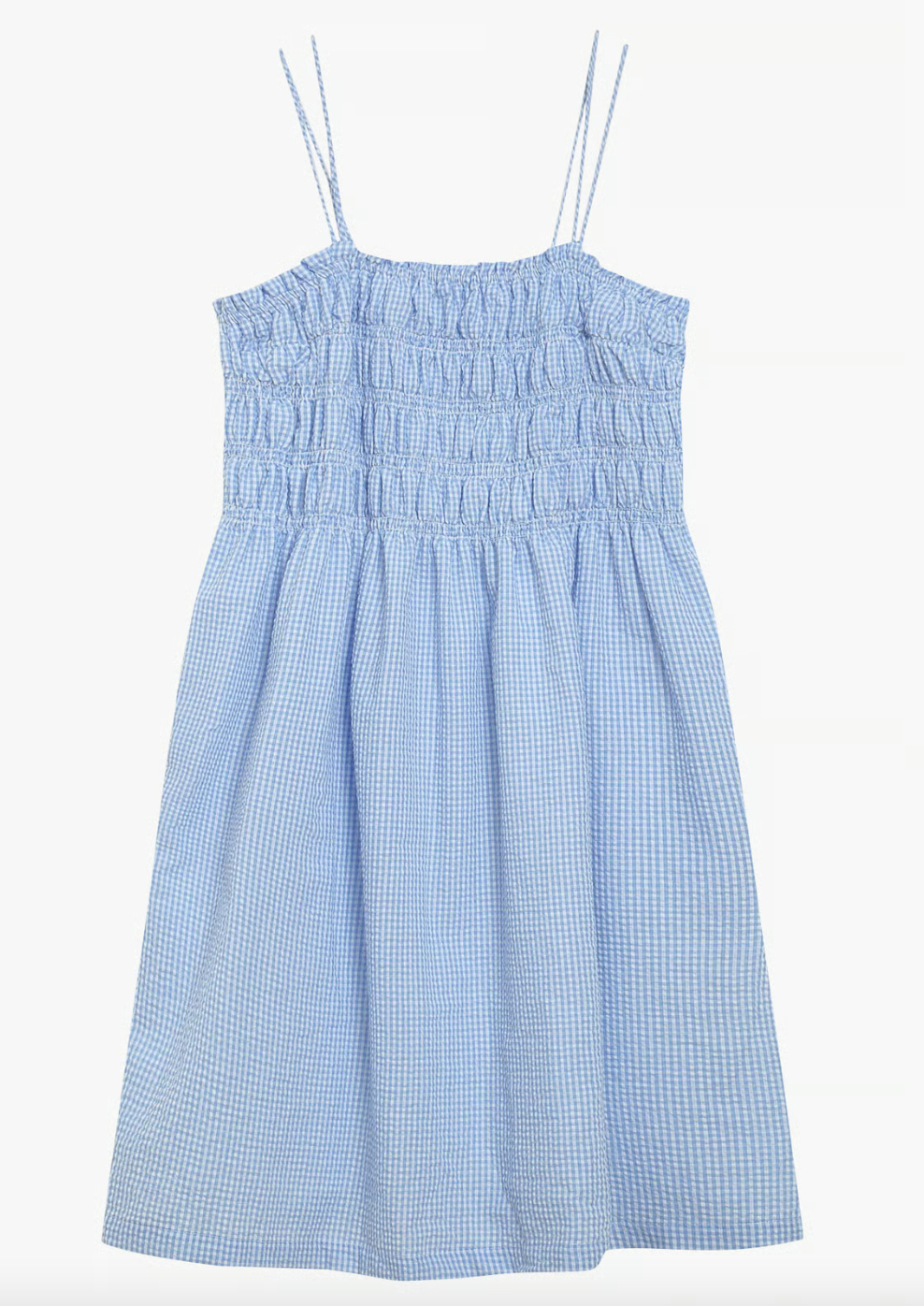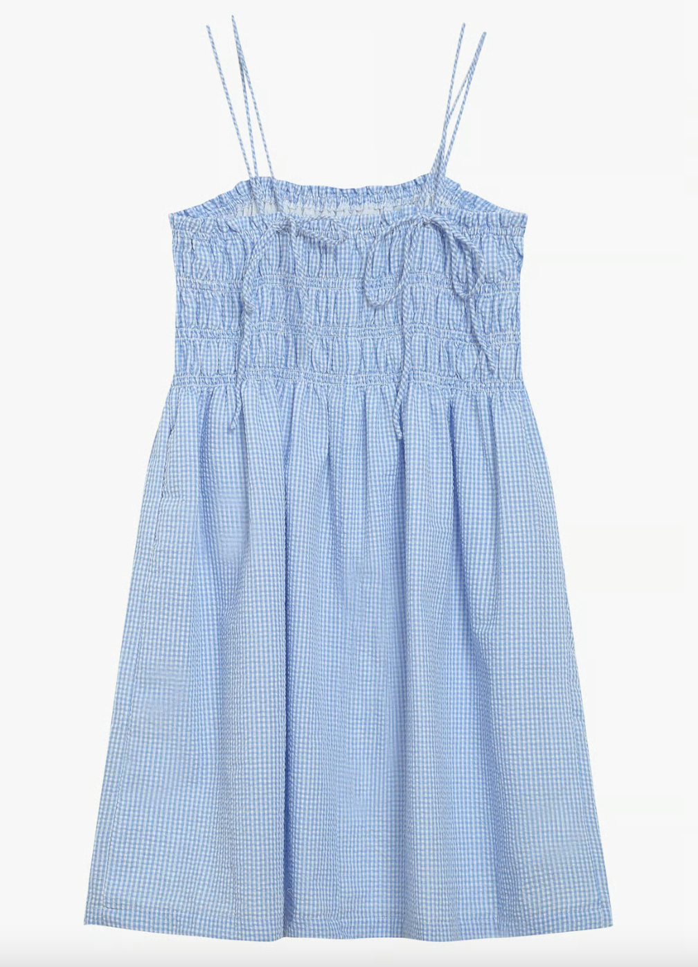 Create an accountA perfect Summer fit- a sweet baby blue elastic, smocked top with adjustable tie straps. Pair with a casual sandal or cute wedge.
