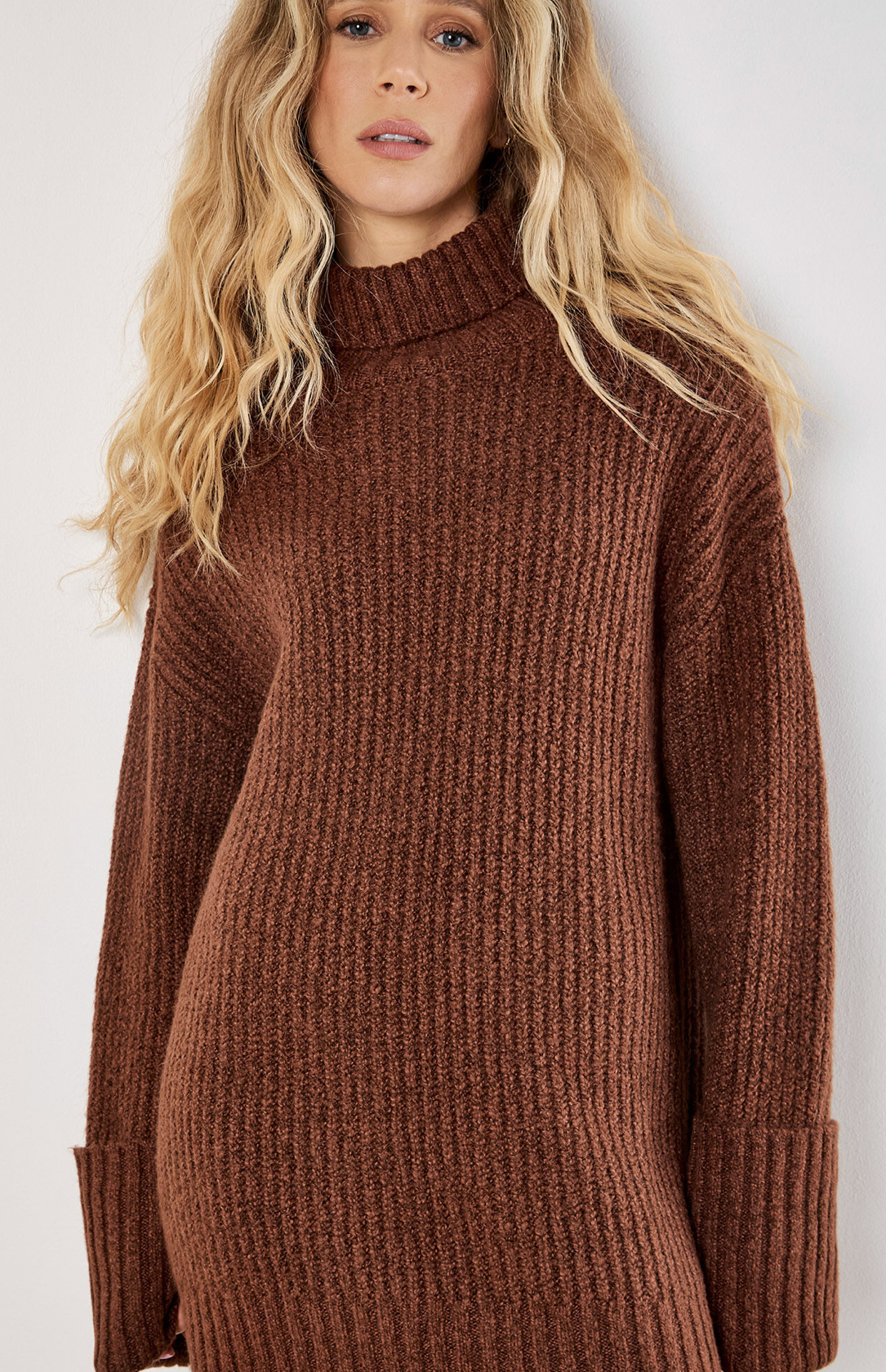- Neckline: Roll neck