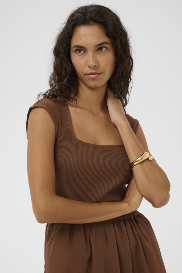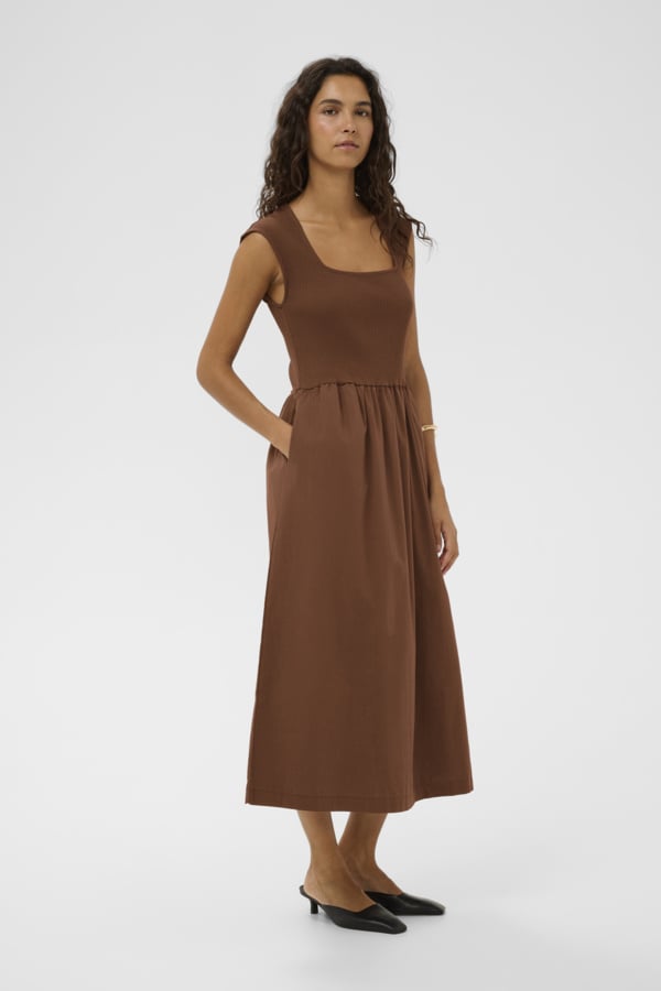 Brown Mixed Fabric Midi