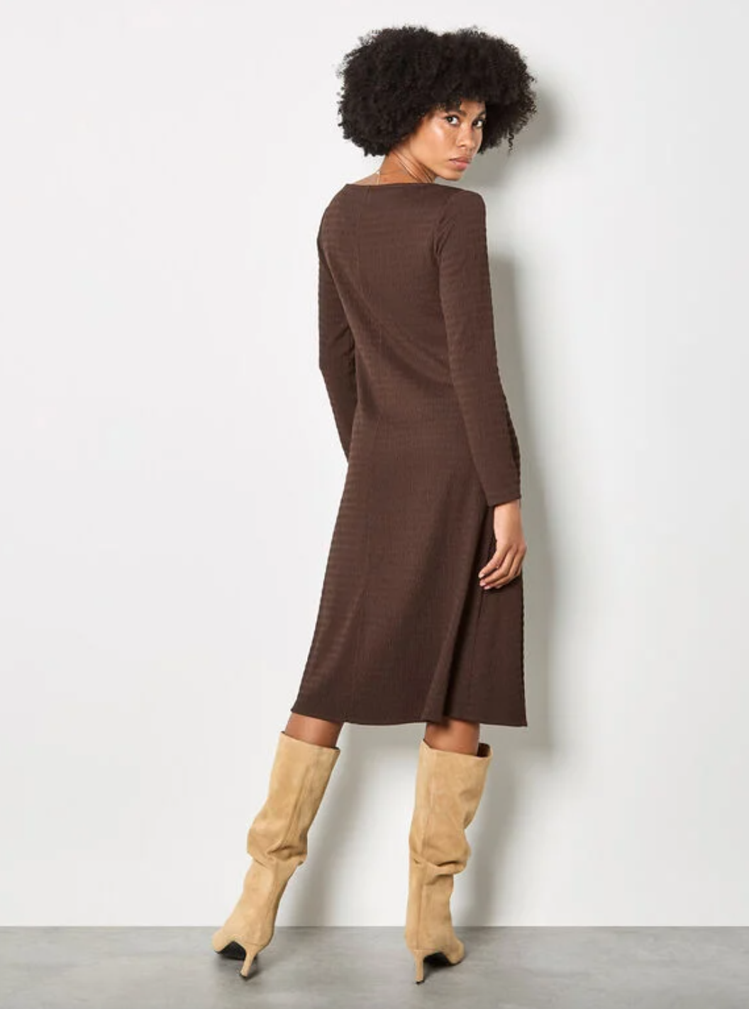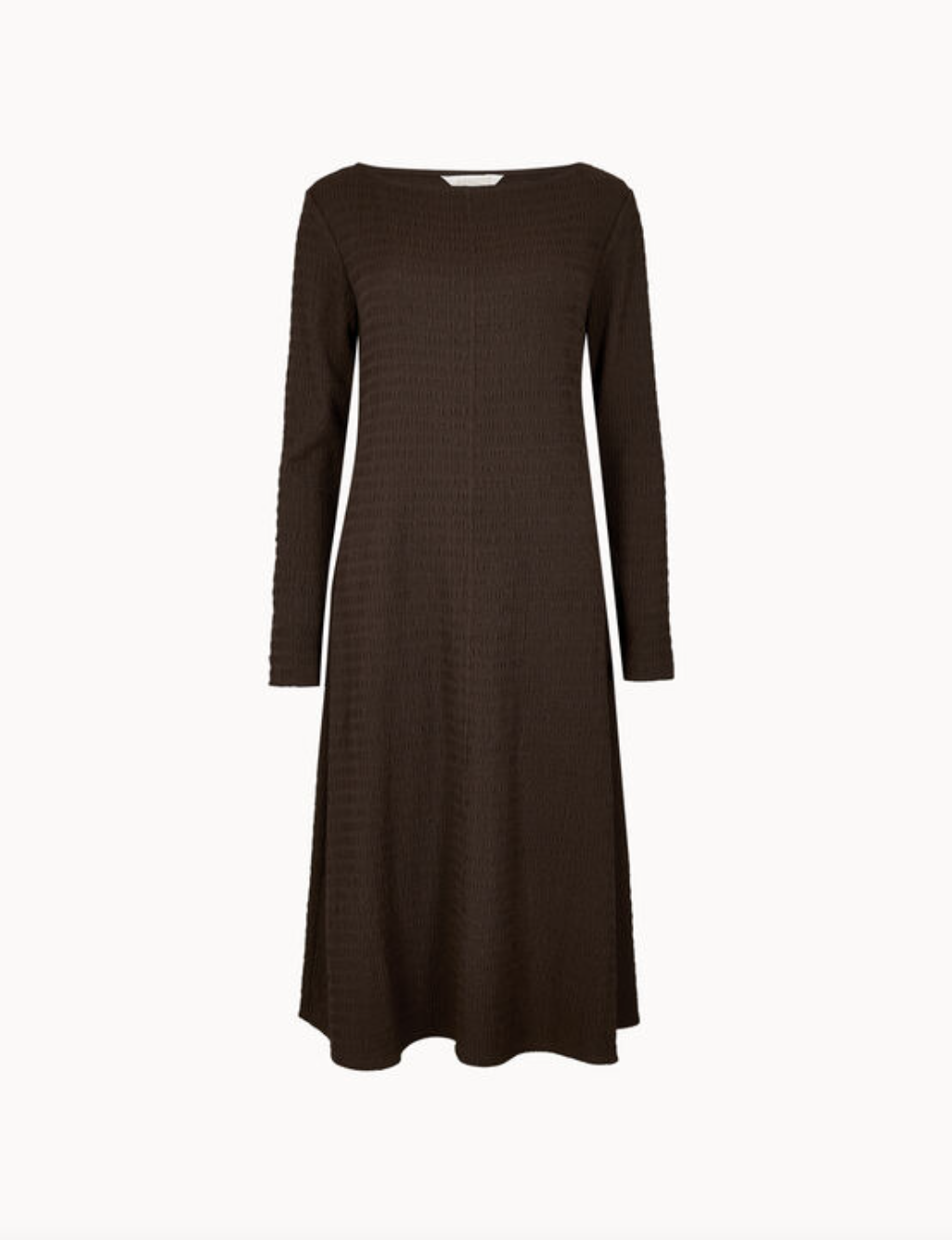 Create an accountWork or weekend, this midi dress is a versatile option for any occasion. Designed in a lightweight, textured jersey with a relaxed, figure-skimming fit, it’s finished with a boat neck and long sleeves. Wear this midi dress with leather boots and a gilet for effortless boho styling.