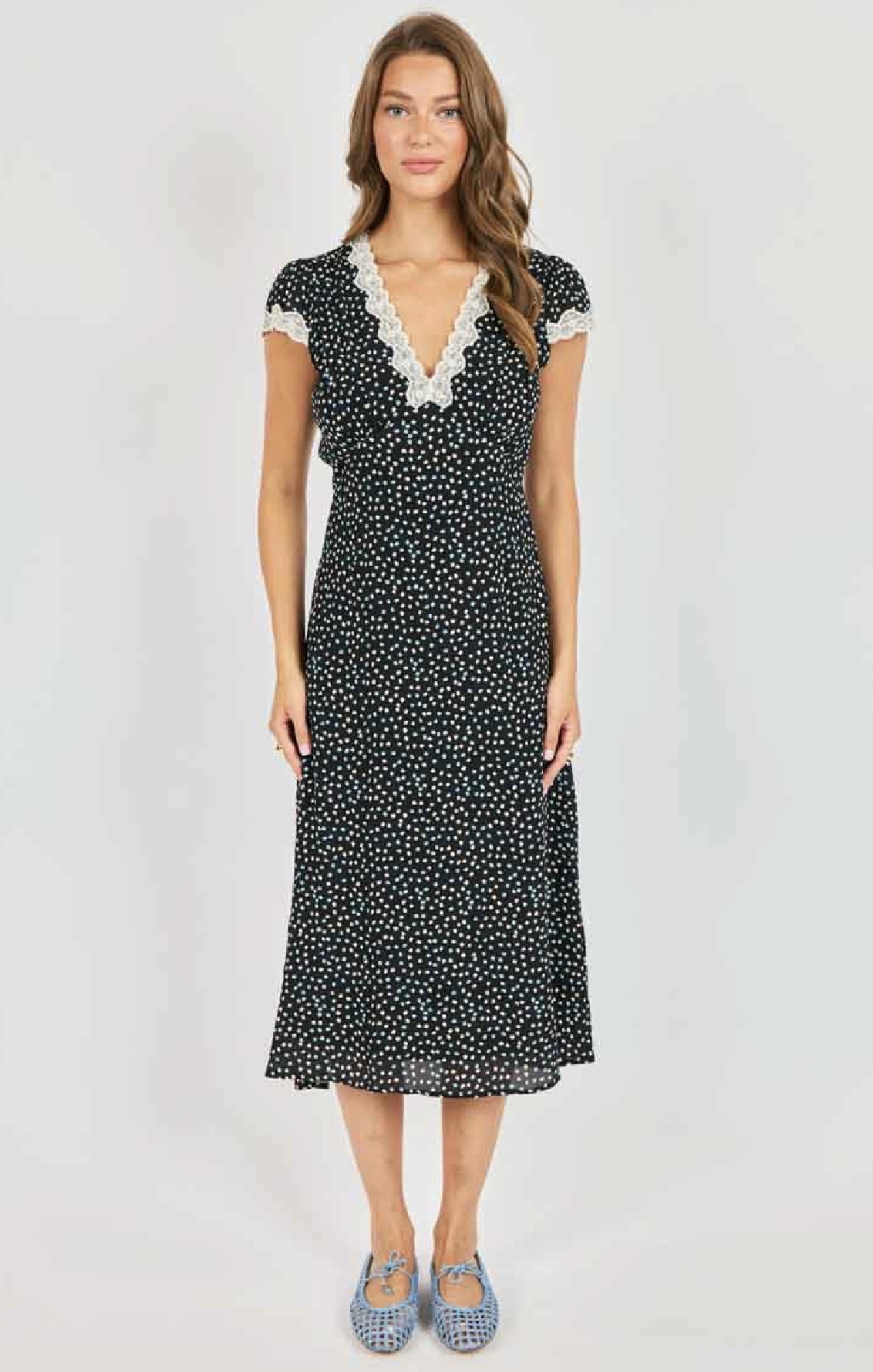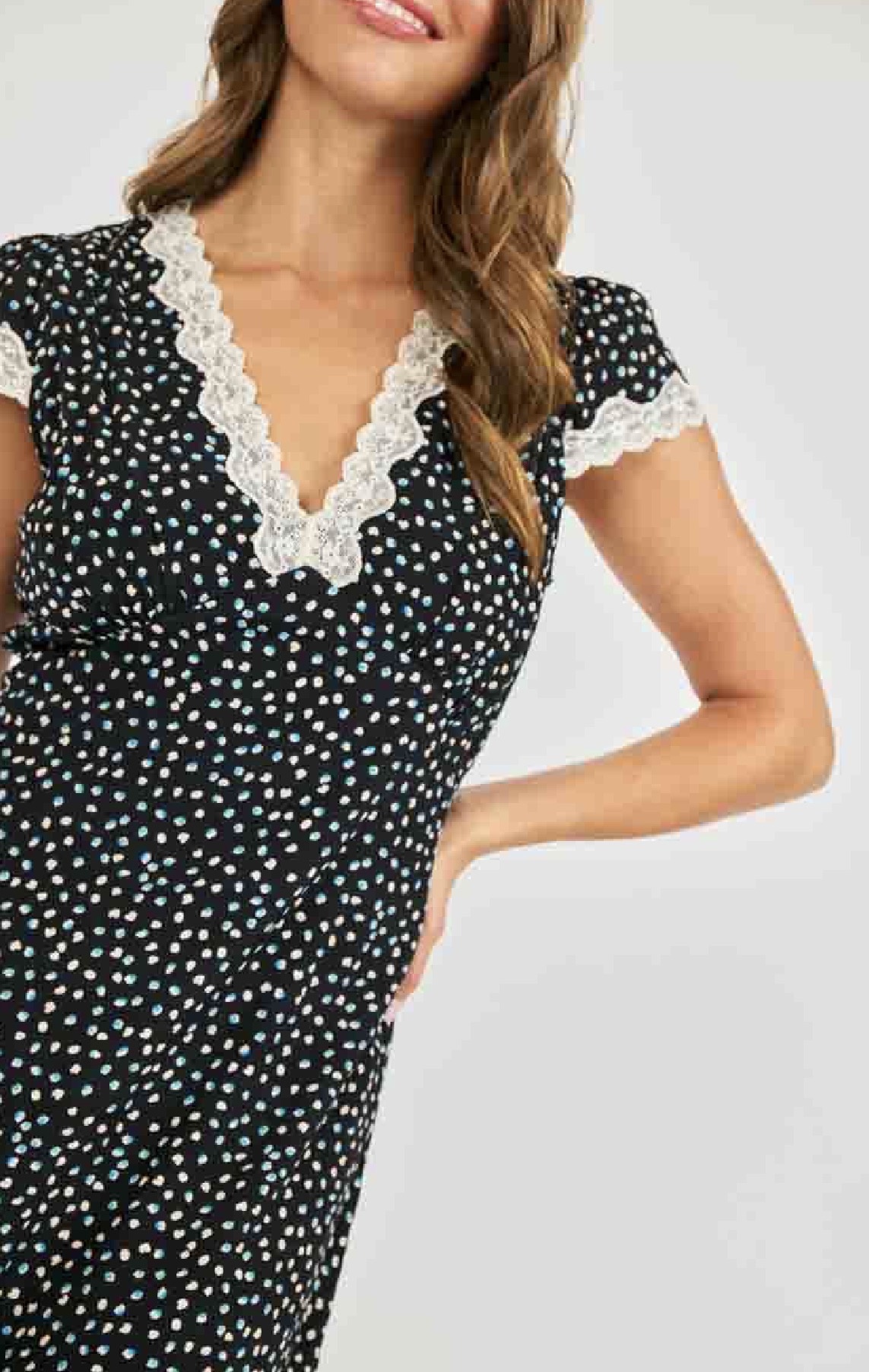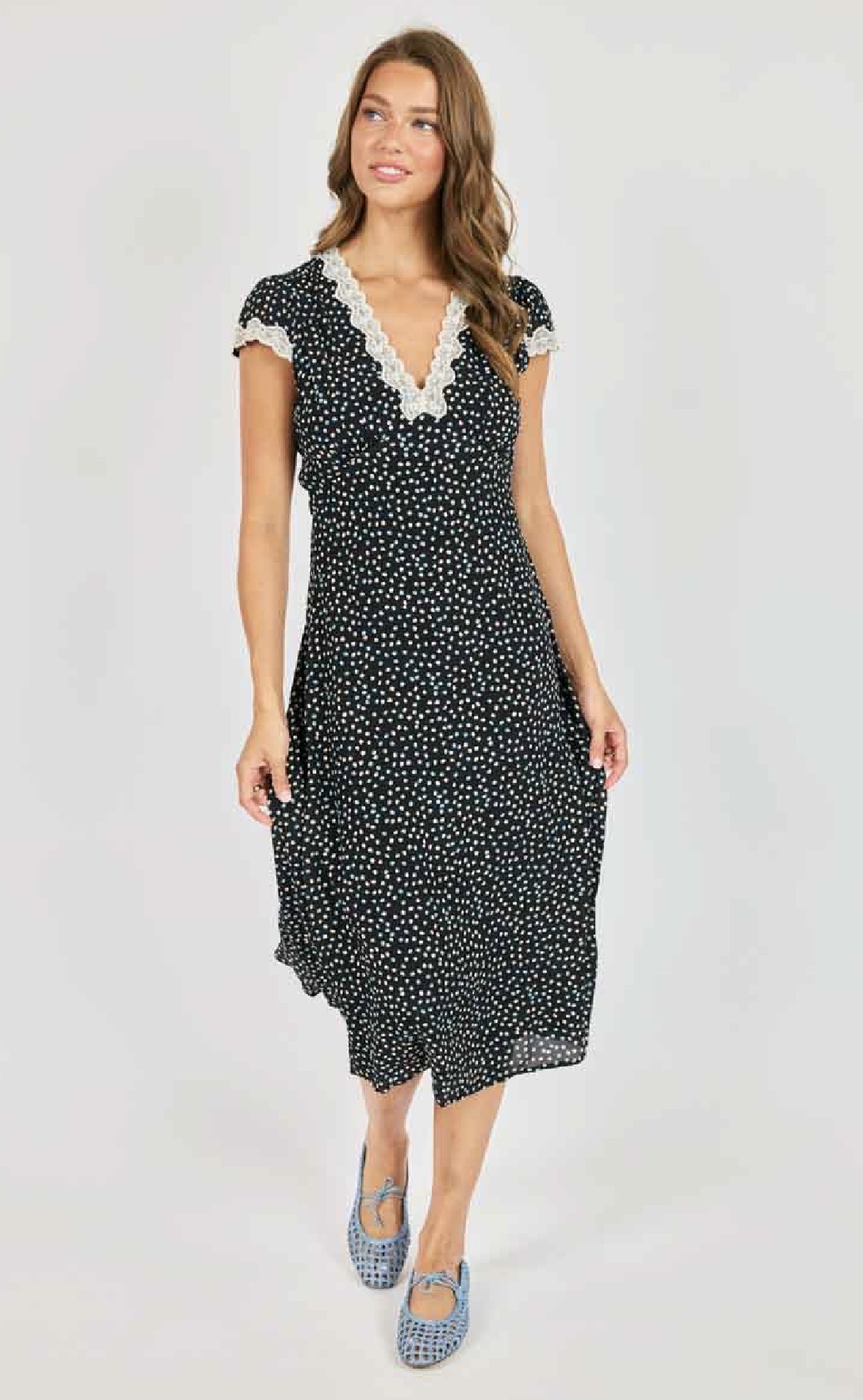 Create an accountThis is giving The Notebook vibes. A slight nod to vintage with this classic lace trimming around a beautilf fitting midi dress. This can be worn multi season and multi occasion.