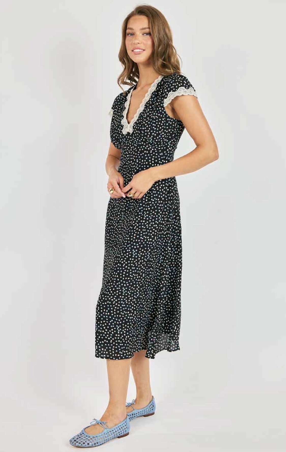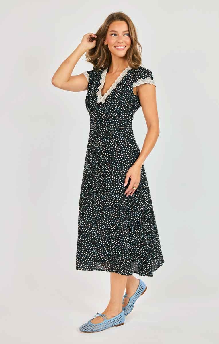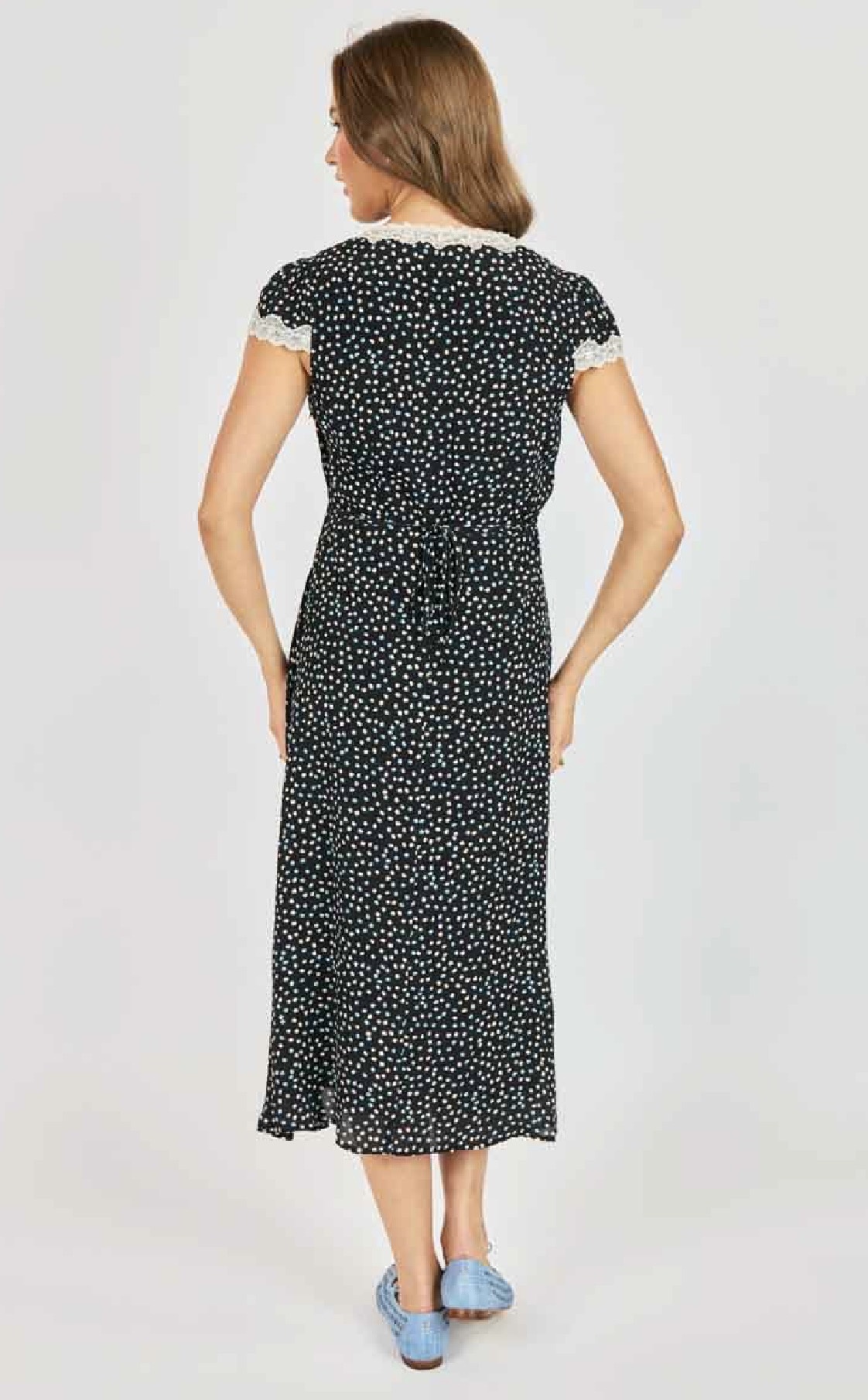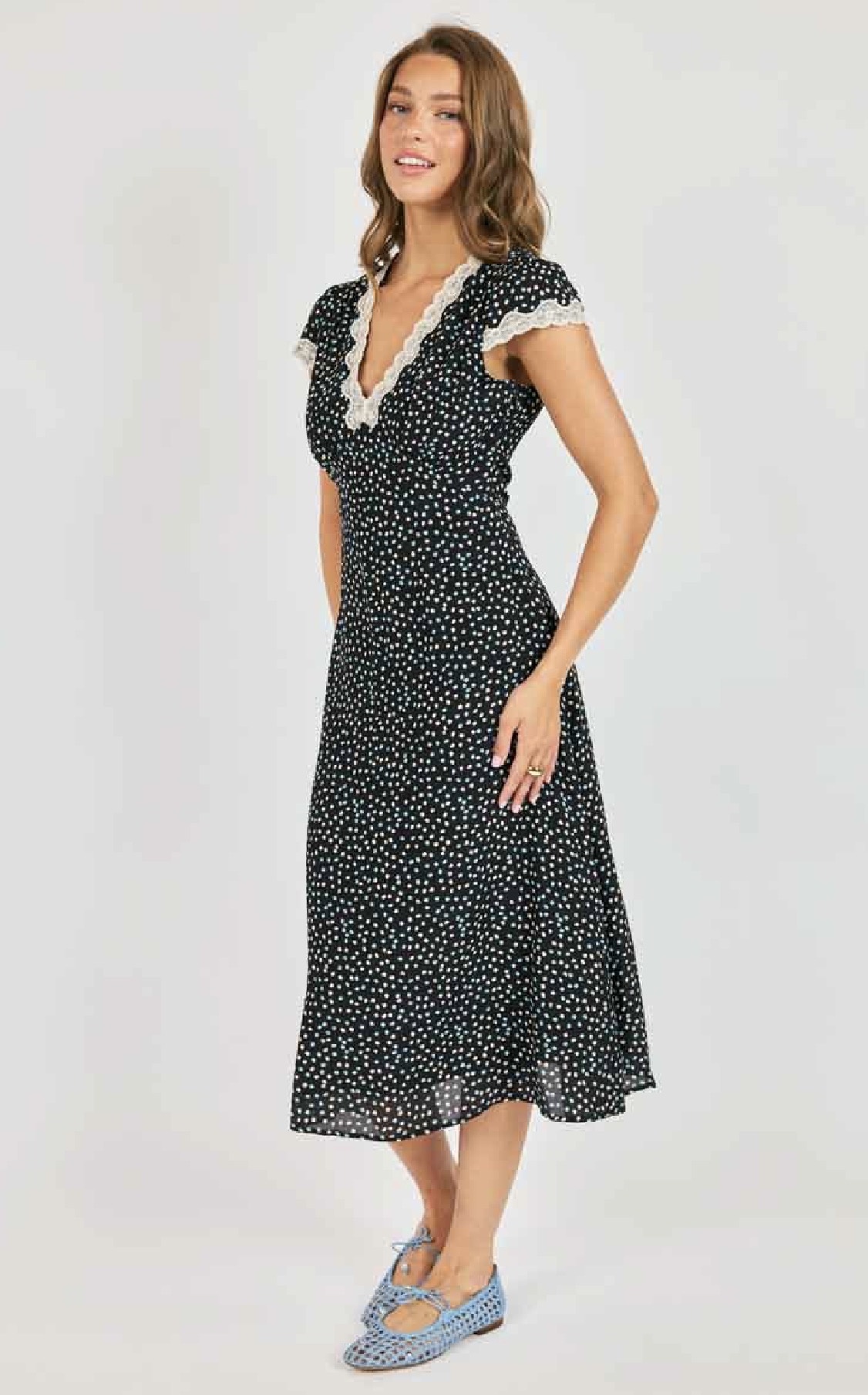 Create an accountThis is giving The Notebook vibes. A slight nod to vintage with this classic lace trimming around a beautilf fitting midi dress. This can be worn multi season and multi occasion.