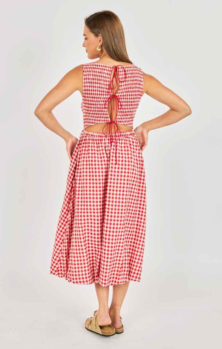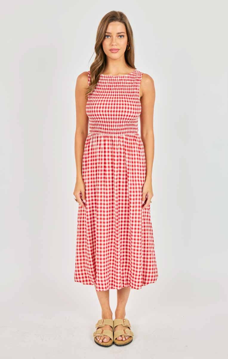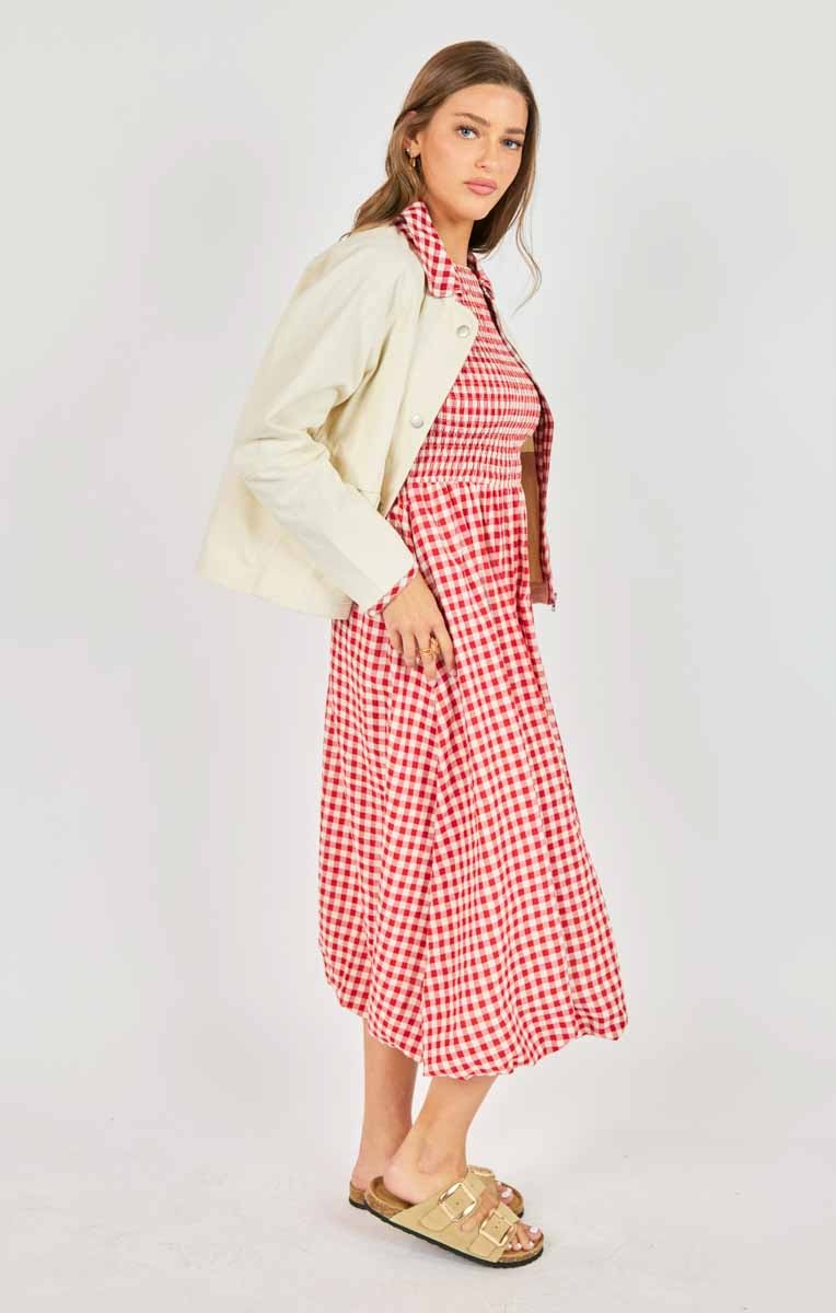 Create an accountThis gingham midi is made from crisp cotton with a fully smocked bodice that stretches to fit, creating an effortlessly flattering shape through the waist and back. The bubble skirt adds charm and volume, while hidden pockets make it feel just as practical as it is pretty. Overall? A joyful piece that's lightweight and easy to wear from morning errands to sunset dinners.