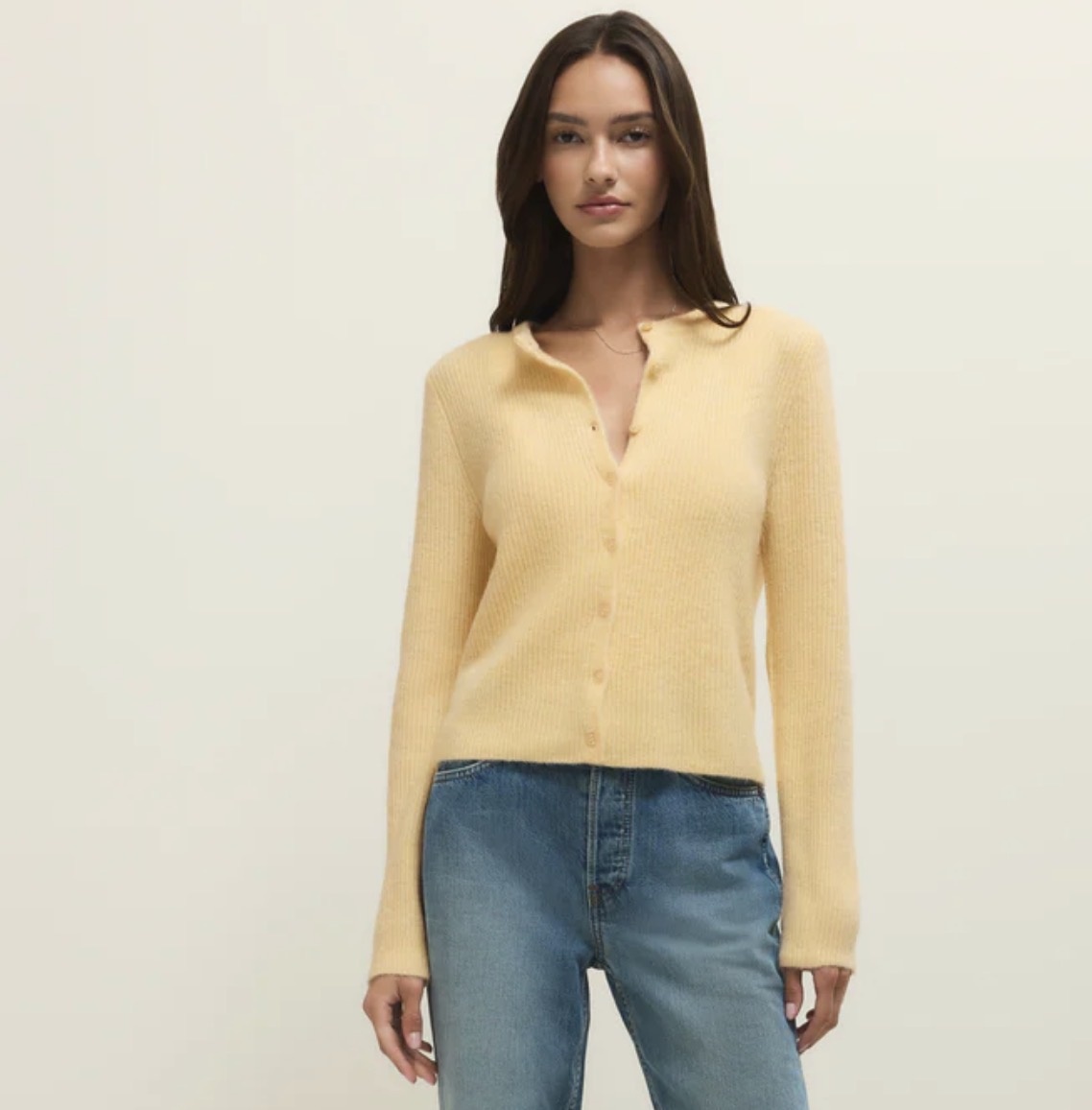 This relaxed crewneck rib cardigan is made from cozy sweater yarns with an easy button-up front that’s perfect for layering. Whether tossed over a tank or worn solo, it’s the ideal go-to for cozy, casual days.